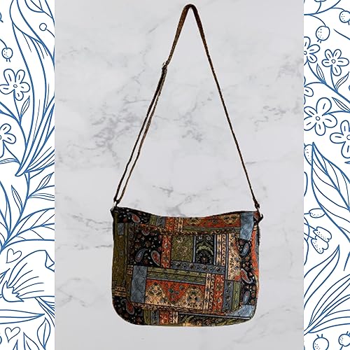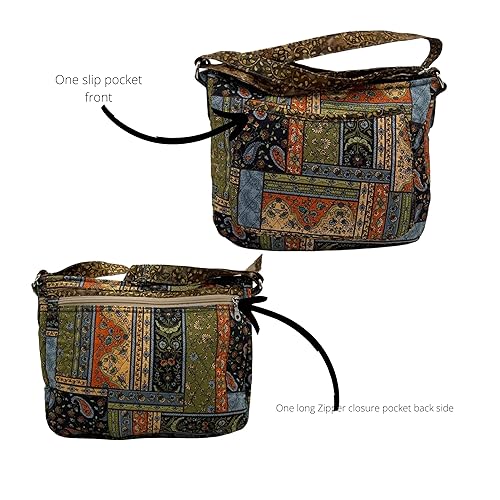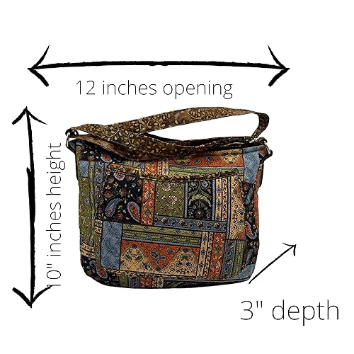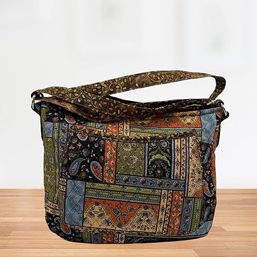 This Crossbody bag perfect for everyday use such as travel and work. Cotton Crossbody bags for women made in USA. HANDMADE It has really long crossbody adjustable strap that makes putting on and taking off easily. Material: Made by Quilted Cotton Fabric with a combination of Cotton Batik fabric and Batik for the lining. Structure; 1 Zippered-Top closure 1 slip pocket front 1 long-zippered at the back, 2 side pocket inside and 1 full-length zippered pocket inside. Adjustable Strap up to 51" inches, you can adjust as a shoulder bag. Size and Measurement: 13" X 10 X 3 inches.