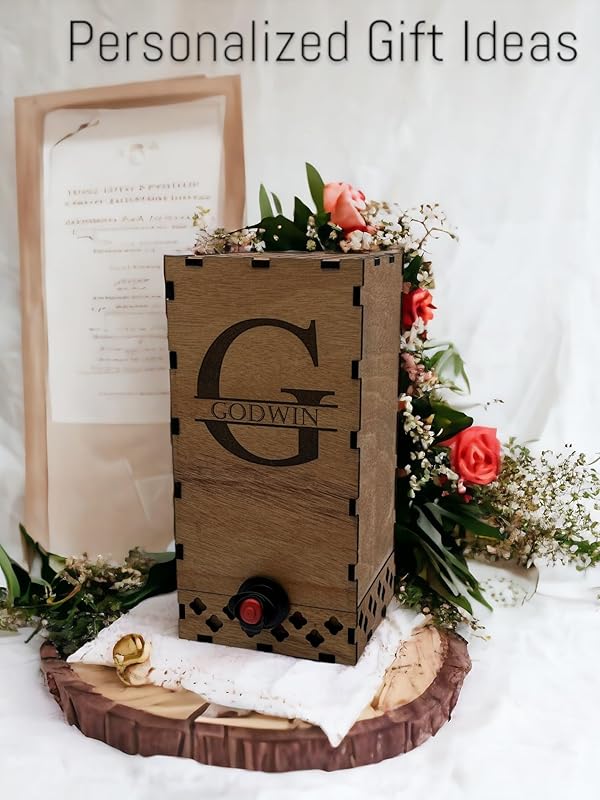 Elevate Your Wine Experience - Tired of unsightly boxed wine packaging, then our custom wood wine box is the perfect solution. Crafted from high-quality, eco-friendly wood, it adds a touch of sophistication to your wine, turning an everyday item into a conversation piece. Ideal for Anniversaries and Weddings - Looking for a thoughtful gift for that special couple celebrating their love, then our custom wine box is a sentimental and lasting way to commemorate anniversaries. Personalize it with the couple's names, wedding date, or a heartfelt message for a truly unique and cherished present. Enhance Your Home Decor - This wine box isn't just for special occasions – it's also a wonderful addition to your everyday home decor. Place it on your kitchen counter, dining table, or bar cart to add a rustic and elegant touch to your living space. Personalized Touch - Make it uniquely yours. We offer customization options, allowing you to choose the wood finish and engraving details. Create a wine box that reflects your style and personality. Great for Caterers and Restaurants. Physical Dimensions - 5.75" wide x 5.75" deep x 12" tall (fits Bota & Black Box Wine). The optional stand is 6.25" wide x 6" deep x 6.50" tall, heightens the box enough for standard wine glass. Leave your wine in the original box, no need to remove the bag.