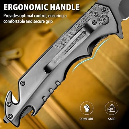 MULTIFUNCTIONAL POCKET KNIFE: 5 IN 1, large blade for cutting, with seatbelt cutter and glass breaker for accident situations, bottle opener and 4 size wrench. HIGH QUALITY BLADE: NedFoss FA48 pocket knife is made of high quality 8Cr14Mov stainless steel, extra sharp and hardness up to 57HRC. SAFE & QUICK OPEN: Rescue EDC knife has a simple and reliable liner-lock that is resistant to dirt and prevents accidental closing. COMPACT AND HANDY: Easy to store, pocket knives with clip for easy carry, Weight: 8.6oz. Total length 9inch, blade length 4inch. Thickness: 3.5mm MULTIPURPOSE FOLDING KNIFE: Whether DIY work, rescue knife in the car, outdoor hunting, camping, NedFoss FA48 survival knife is your ideal companion for all activities and situations