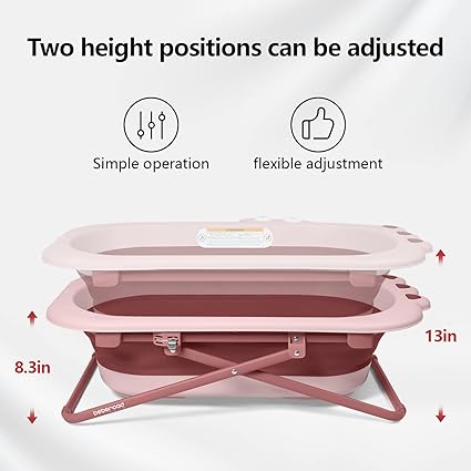 Convenient Design: This toddler bathtub is not only collapsible for easy storage, but also has a height-adjustable feature, making bath time a breeze for both parents and toddler. Cute Appearance: The cute and colorful design of this bathtub will surely capture the attention of your little one, making bath time fun and enjoyable. Safe and Durable: Made from high-quality materials, this bathtub is sturdy and safe for your toddler to use, giving you peace of mind during baths. Easy to Clean: The smooth surface of the bathtub makes it easy to clean and maintain, ensuring a hygienic bathing environment for your toddler. Perfect for Travel: Its compact and foldable design makes it perfect for travel, allowing you to bathe your toddler comfortably wherever you go.