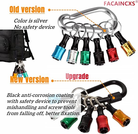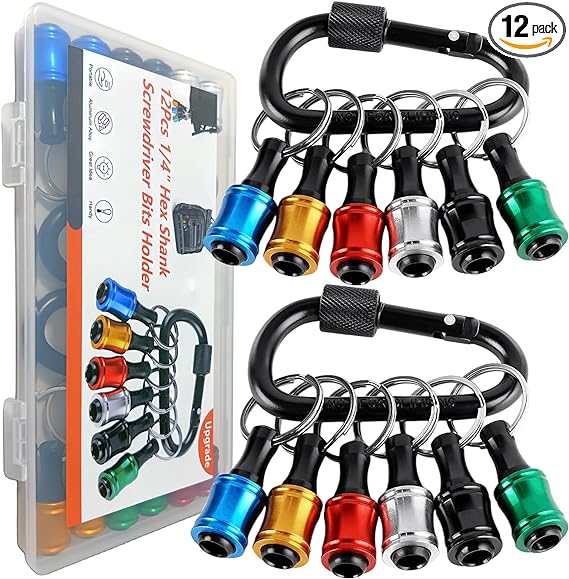 Aluminum Alloy Durable & Versatile : Crafted from high-quality aluminum alloy, the drill bit socket adapter is sturdy and durable. It is built to resist rust and corrosion, achieving maximum durability.The drill bit storage features a powerful ball lock buckle that can securely carry drill tools weighing up to 3.3lbs, ensuring the drill bits are less likely to fall. It serves as an indispensable organizer for your tool collection, ready to be used in a wide range of applications. Buy with Confidence & Adequate quantity: FACAINCXS offers a 30 day money back and 1 year warranty or exchange guarantee If you are dissatisfied with it. Please feel free to contact us if you need help with your order, we will reply with 24h and solve the problem. : you will receive 12 pieces 1/4 inch hex shank keychain extension bars in some different colors, sufficient quantity to meet your daily use. Thoughtful & Safe : The cupped design of hex shank keychain extension bars are designed for your easy holding and convenient replacing another drill bit, which can offer you a pleasant using experience. Their smooth finish and removable bushings can well avoid hex shank keychain extension bars from unexpectedly falling, ensuring the safety of high-altitude operation. Durable & Extensive Usage: These drill bit socket adapters are made of aluminum alloy, feature nice durability, lightweight, sturdy, which ensures their longevity. Hex shank keychains are suitable extension of most screwdriver bits; The universal 1/4-inch fast hex shank and 1/4-inch hex socket are compatible with a variety of electric screwdrivers, hand-held screwdrivers and drill bits. Cool Christmas Gift : This versatile screwdriver bit holder is the perfect present for anyone in construction or electrical work. It's an ideal stocking stuffer for both men and women, making it an excellent gift for dads, husbands, boyfriends, or anyone who loves tech gadgets and cool tools.They serve as an excellent tool gift for husband, boyfriend, father, adults, stepfather, brother, and him. Celebrate Valentines Day, birthday, Christmas stocking stuffers, or personalize it as a Father’s Day gift from a wife, daughter, son, or kid. Universal for 1/4 Inch Drill Bits: The bit holder is designed with universal compatibility for 1/4 inch quick hex shank and 1/4 inch hex socket. This impact socket organizer keychain tool keeps a variety of 1/4 inch bits handy, suitable for various electric drivers or hand-held drivers. It's suitable for professionals such as contractors, builders, carpenters, and woodworkers, as well as DIY enthusiasts and maintenance professionals working in high-altitude operations. Bit Holder Tools Gifts for Men : Bit holders are essential stocking stuffers for men and women. They act as a customized tool gift for men, and offer distinctive gifts for dad, husband, boyfriend, father, adult, him, brothers. Commemorate occasions like Christmas, Father’s Day, Birthdays,Valentine's Day,New Year's Day and any other Anniversaries. Coverage and Duration : This warranty covers any defects in materials and workmanship for a period of 180 days from the date of purchase. If your Bit Holder Keychain exhibits such defects during the warranty period, we will replace it at our discretion, free of charge. Exclusions: Please note that this warranty does not cover damages resulting from misuse, abuse, accidents, normal wear and tear, or unauthorized modifications