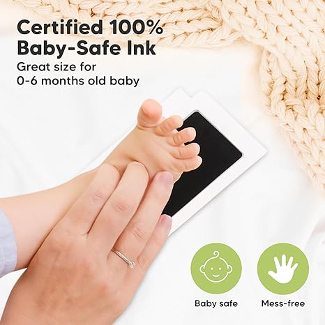 No Mess, No Residue - Designed to create your baby's hand and footprints without leaving ink residue on your baby’s hands and feet. Our clean touch ink pads use a “zero ink contact” imprinting method to allow beautiful stamping of your baby’s hands and feet on art cards, memory book journals and other paper-based baby keepsakes. Mess free ink pad for babies. 100% Baby Safe, Certified - Although we use clean touch baby ink pad, we ensure that the inks we use in our baby footprint kit is lab-tested and certified to be 100% safe for your baby. Premium Quality Ink and Imprint Film - Quality of completed imprints depends heavily on the quality of the ink and film used on every ink pad. We formulated the best ink composition together with high quality film to ensure that every detail of your baby's hand and feet imprints will turn out looking perfect! Perfect Ink Pad Size - Our ink pad for baby hand and footprints are sized at 3.2” by 5” with an ink window of 2.3” by 3.7”, ideal for newborn baby’s 0-6 months hand and footprints or your fur baby’s paw print. Easy to use, it takes less than a minute to create a precious newborn baby keepsake as Mother's Day gift. 12 x 250GSM Art Cards - Your little one is perfect; so are their hand and footprint. Use the additional art cards to stamp multiple hand, foot or paw print. Choose the best artwork for your desired displays. Refer to our step-by-step instruction manual on how you can achieve the best results.