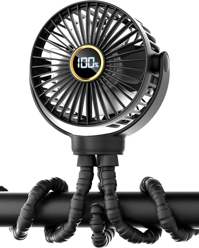 3 SPEEDS & ROTATABLE HEAD: The stroller fan has 3 wind speeds (low/medium/high) and a 360°rotatable head, you can adjust the wind direction to suit your needs and keep cool in any position. FLEXIBLE-TRIPOD-CLIP: The fan is equipped with a flexible tripod clip, which can be easily attached to the stroller handlebar, car seat, crib, bike seat, treadmill, or any other flat surface. It is convenient to use and provides a stable cooling effect. PORTABLE & EASY TO USE: The fan is battery-powered, so you can take it with you wherever you go. It is lightweight and compact, making it easy to carry and store. The built-in rechargeable battery provides long-lasting power and can be recharged via USB. DURABLE & SAFE: The fan is made of high-quality materials, which are durable and safe to use. It has a safe and stable design, with no sharp edges or corners that can harm your baby or pets. SUITABLE FOR ANY OCCASION: The fan is suitable for any occasion, whether you are taking a walk in the park, going on a picnic, or traveling in the car. It can provide a cool breeze to keep you comfortable and refreshed. A must have for you and your love ones