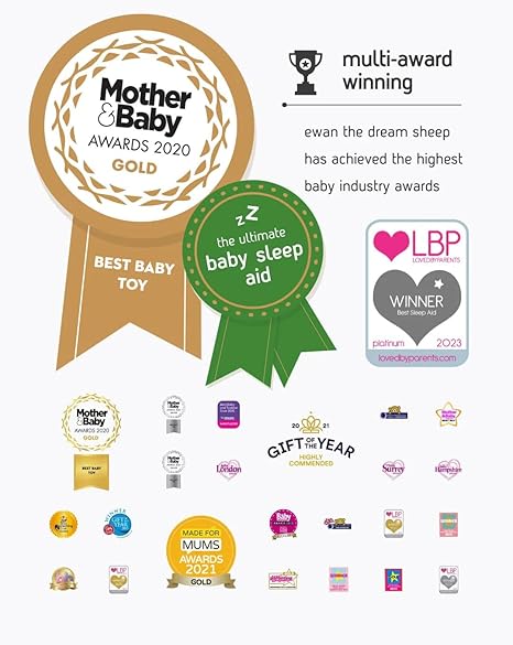 BEST-SELLING UK BABY SLEEP SOOTHER: With over 1 MILLION ewans sold globally, ewan is working hard to help babies and toddlers sleep peacefully - which of course means Mom and Dad get a great night’s sleep too! REAL WOMB, HEARTBEAT AND SHUSHING RECORDINGS: Super cute and cuddly ewan the dream sheep deluxe replicates the comfort of the womb with a selection of soothing sounds, including actual recordings of Mom’s womb and heartbeat along with the calming shush of a real human voice, to help lull your newborn or toddler into a peaceful slumber. WHITE AND PINK NOISE SOUND MACHINE: Ewan has a choice of 5 mesmerizing sounds including Rainfall, Harp Lullaby Melody, Vacuum Cleaner, Womb, and Shush, all combined with Mom's resting heartbeat to provide an effective soothing device for settling restless babies and infants. CRY SENSOR: Ewan also features a cry sensor which is cleverly designed to listen for 4 hours and automatically activate when your baby cries helping to resettle them. These sounds also help mask loud noises which may wake your baby, thereby providing a calming sleep environment to help encourage your baby (and you) to settle quickly and sleep longer! Please note that by default ewan’s cry sensor is turned off and needs to be switched on when required. COMFORTING NIGHT LIGHT: Unlike an intrusive projector, ewan’s soft pink night light glow mimics the womb environment to help comfort and soothe your little one and help induce sleep, whilst his sounds and night light feature a 20-minute timer with automatic shut off – saving you the inconvenience of having to get out of bed to switch ewan off!