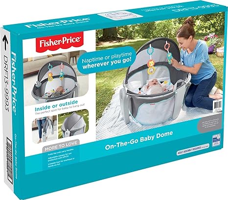 2-in-1 portable baby bassinet and play space, perfect for use at home, outside, or while traveling Can be used indoors or out: Adjustable Canopy protects your baby from the sun's rays (UPF 20) and bugs 2 removable baby toys for engaging play Folds flat with handles for easy take-along Wipeable mat and machine-washable sheet