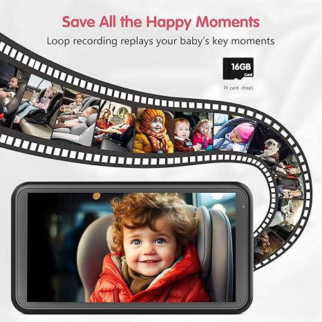 【Color Night Vision】With the latest chip technology, the BM3 baby car camera is equipped with full-color night vision, allowing you to see colorful images at night instead of traditional black and white images. 5.2'' HD Car baby monitor will automatically change to night vision function according to the intensity of light. Note: The night vision function must be used when there is ambient light. If there is no ambient light, the night vision function will not work well. 【Video Recording Function with TF Card】Using our BM3 car camera for baby, you can record every precious moment of your baby in the car at any time. Our car seat camera is equipped with a 16GB TF card, allowing you to easily store and play back videos. 【3x Zoom Function】The BM3 baby camera for cars has a 3x zoom function, and its upgraded technology allows you to zoom in on the image without losing image quality. The car baby camera also supports adjusting brightness, mirror/normal. You can choose the most suitable viewing angle according to your needs. 【Safe Driving & Stable Without Shaking】Compared with the traditional car monitor for babies, our BM3 baby car monitor is equipped with a buckle bracket and has excellent anti-shake function. Even when driving on bumpy roads, the camera remains stable. Warm tips: Please make sure that the wiring is installed correctly. If the wiring is incorrect, the camera will not work properly. 【Adjustable Angle & Wide Viewing View】BM3 baby monitor with camera supports 360-degree rotation, allowing you to adjust the camera angle up or down according to the seat position and baby's size for the best visualization. This way you can keep an eye on multiple kids at the same time. 【Easy to Install & Use】The camera easily mounts to the headrest without any tools. We also offer 3M adhesive to hold the monitor in place, simply place the monitor on the dashboard and connect it to the power source to get it working. The baby monitor for the car automatically turns on and switches to the infant's back seat. The 12V cigarette lighter works with most models.