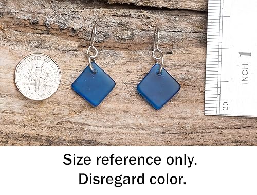 A dancing diamond shape of Sea Glass on a Sterling French Wire. This bold piece of glass adds a perfect color hit to your look. 925 STERLING SILVER. Shipped gift wrapped in a hand made flower petal pouch. CULTURED SEA GLASS - Our glass comes from many sources – reclaimed, recycled and repurposed. Please see the 3rd photo (with a dime shown) for the design’s relative size. Do you have sun streaked memories of finding impossibly smooth sea glass on the beach? Our jewelry will remind you of those carefree days! Each Beach Glass piece is 1/2 x 1/2 inches. Every design is a unique work of art, made by hand, so slight variations of colors and patterns are possible.